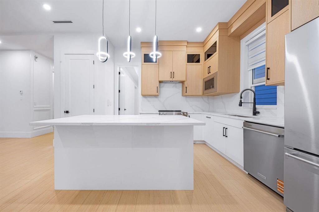 Located in the heart of East Newton, this brand-new luxury 3-level home offers (2+1) mortgage helpers basement suite. Top Floor Features a stunning primary bedroom with a spacious walk-in closet and a luxurious ensuite, along with three additional generously sized bedrooms and two full bathrooms. Main Floor Designed for modern living, it includes a spice kitchen, separate living and dining areas, and a family room with access to a covered deck. A bedroom with a full washroom on the main floor offers added convenience. Basement Includes a two-bedroom legal suite with a full bathroom, plus an additional one-bedroom suite, providing excellent rental income potential. Double garage with three extra parking spaces in the rear driveway. Premium finishes, high ceiling.